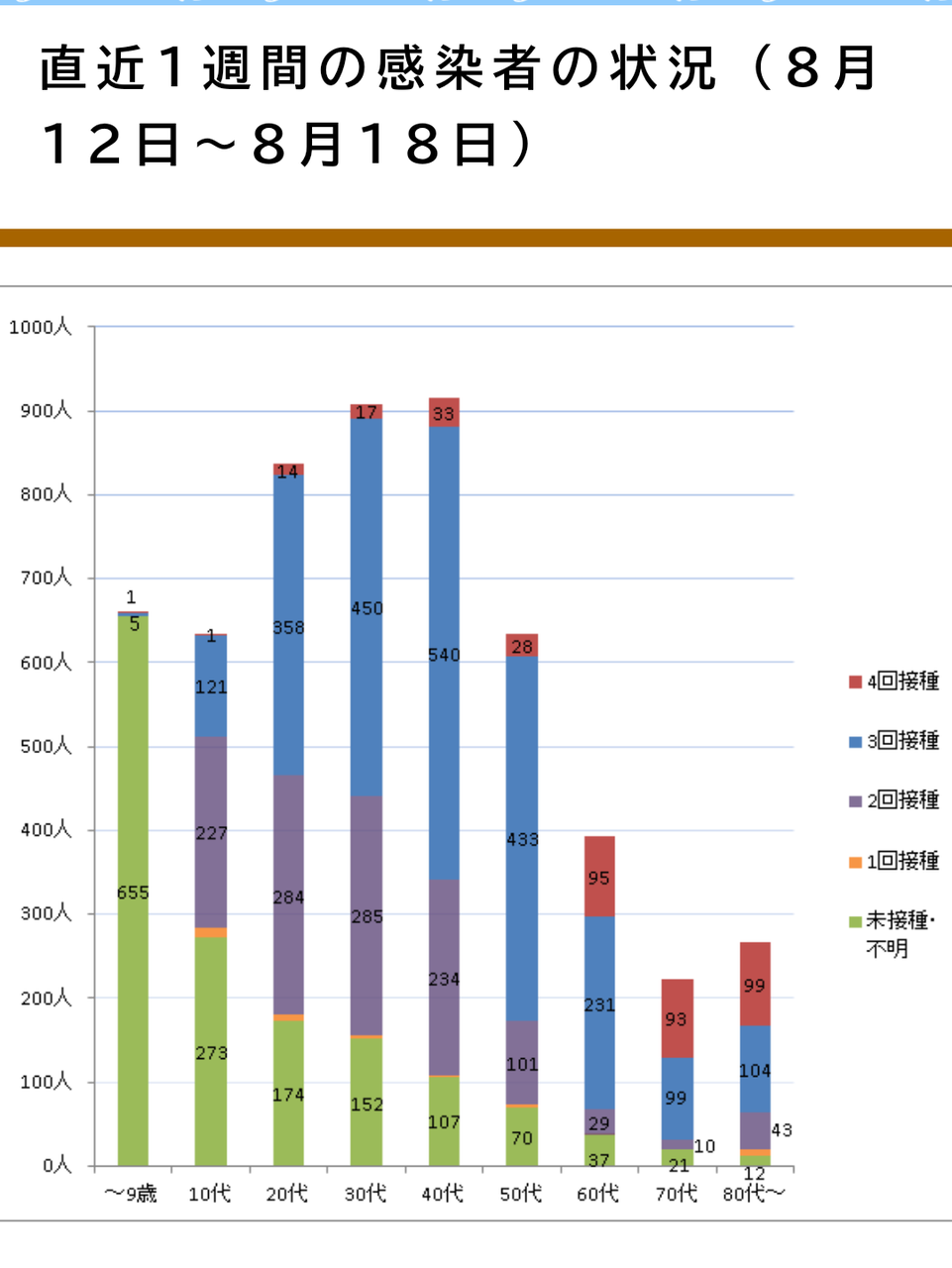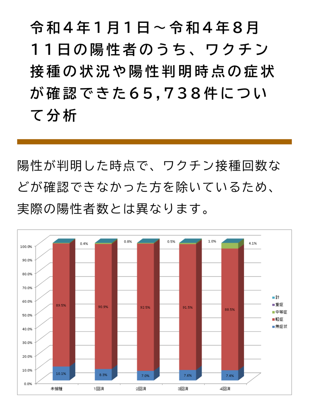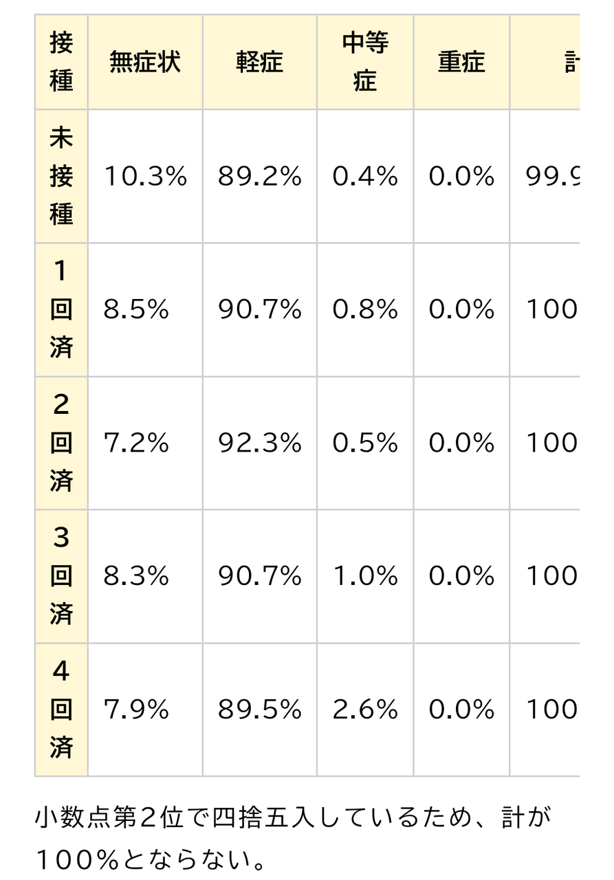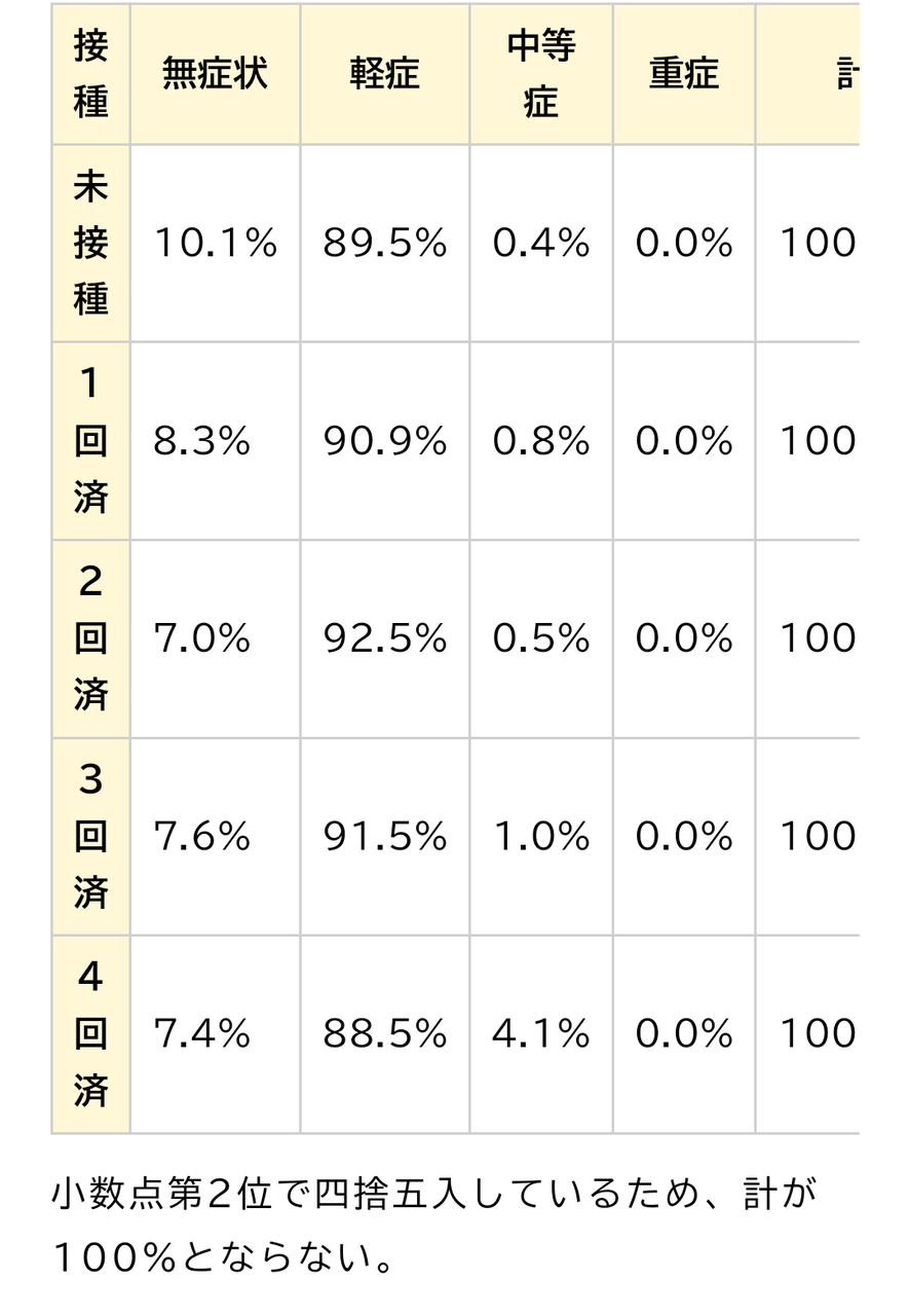 感染者のうち無症状は未接種が一番多く、中等症は4回打った人が多いです。