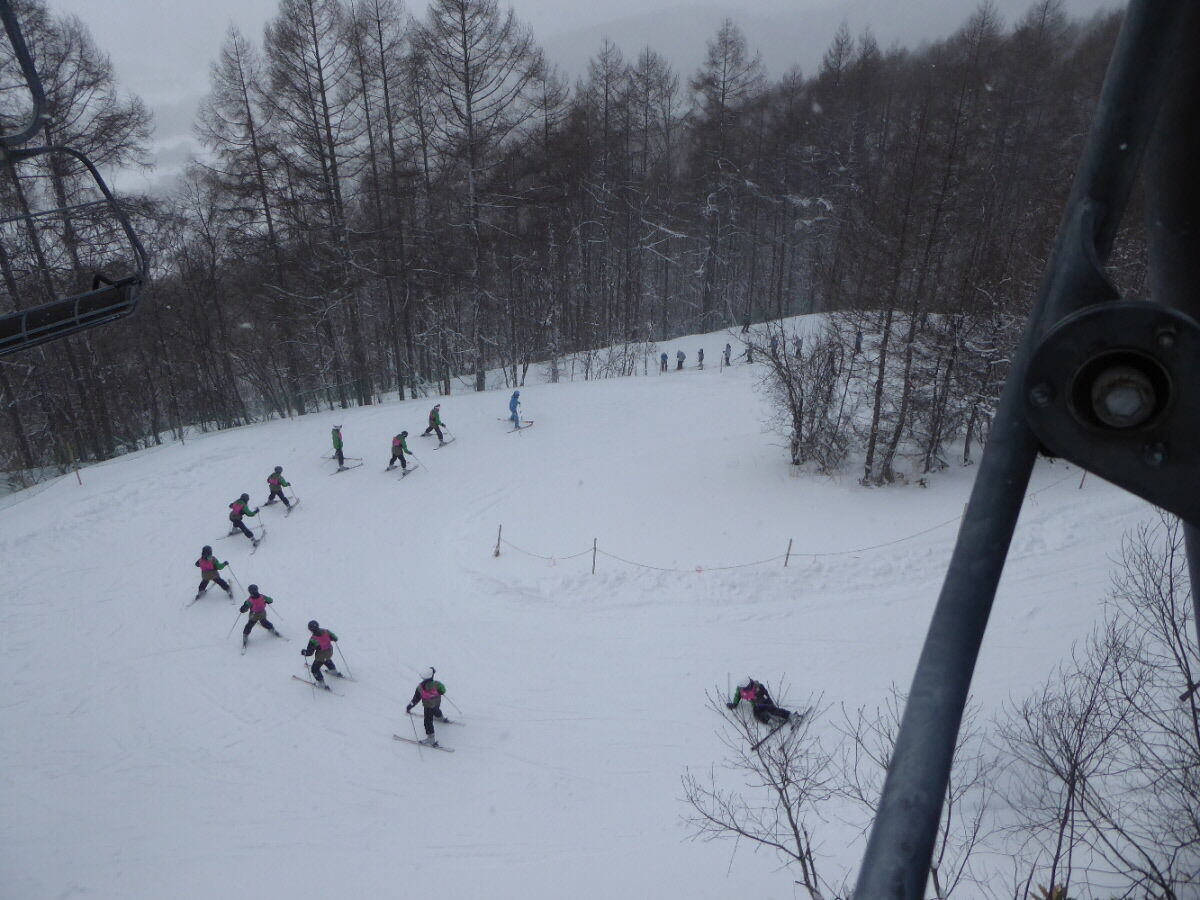 こちらはパッと見ただけで太郎ロングコースに4校、他のゲレンデや遠くダボスゲレンデのほうにもそれらしい集団が見えました。