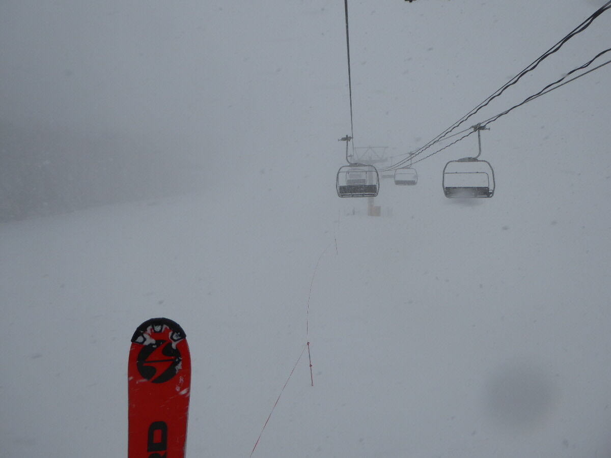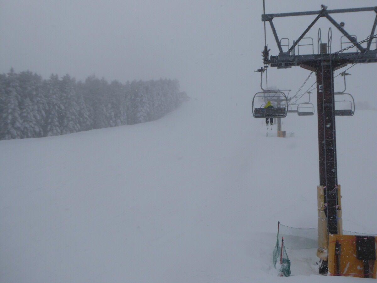 午前中は晴れて空いててさほど寒く無く、大した事無いのかなと思って滑ってました。