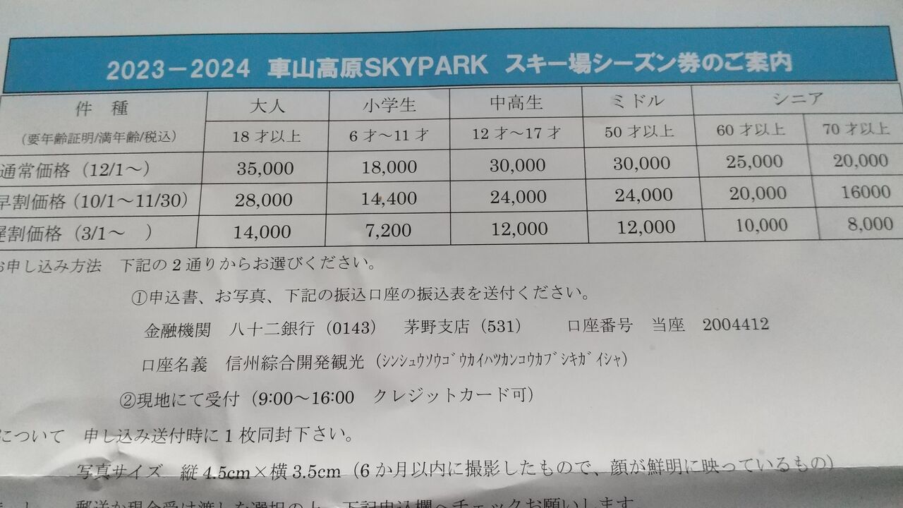 先日、まえにホームゲレンデにしていた車山高原スキー場からシーズン券の案内状が届きました。