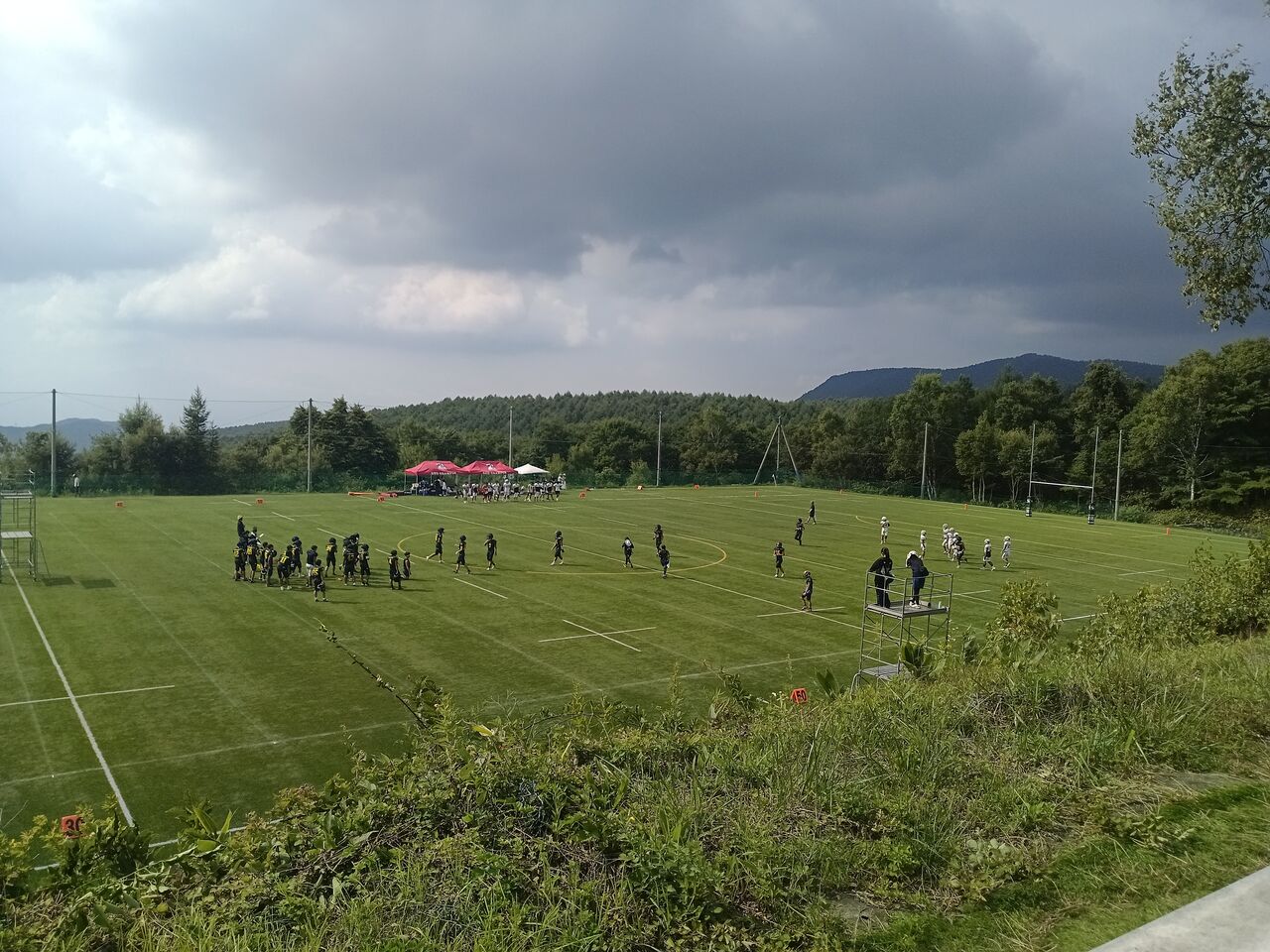 こちらは茨木のサッカー部、反対側では何処かの大学のアメフト部が練習試合をしていました。