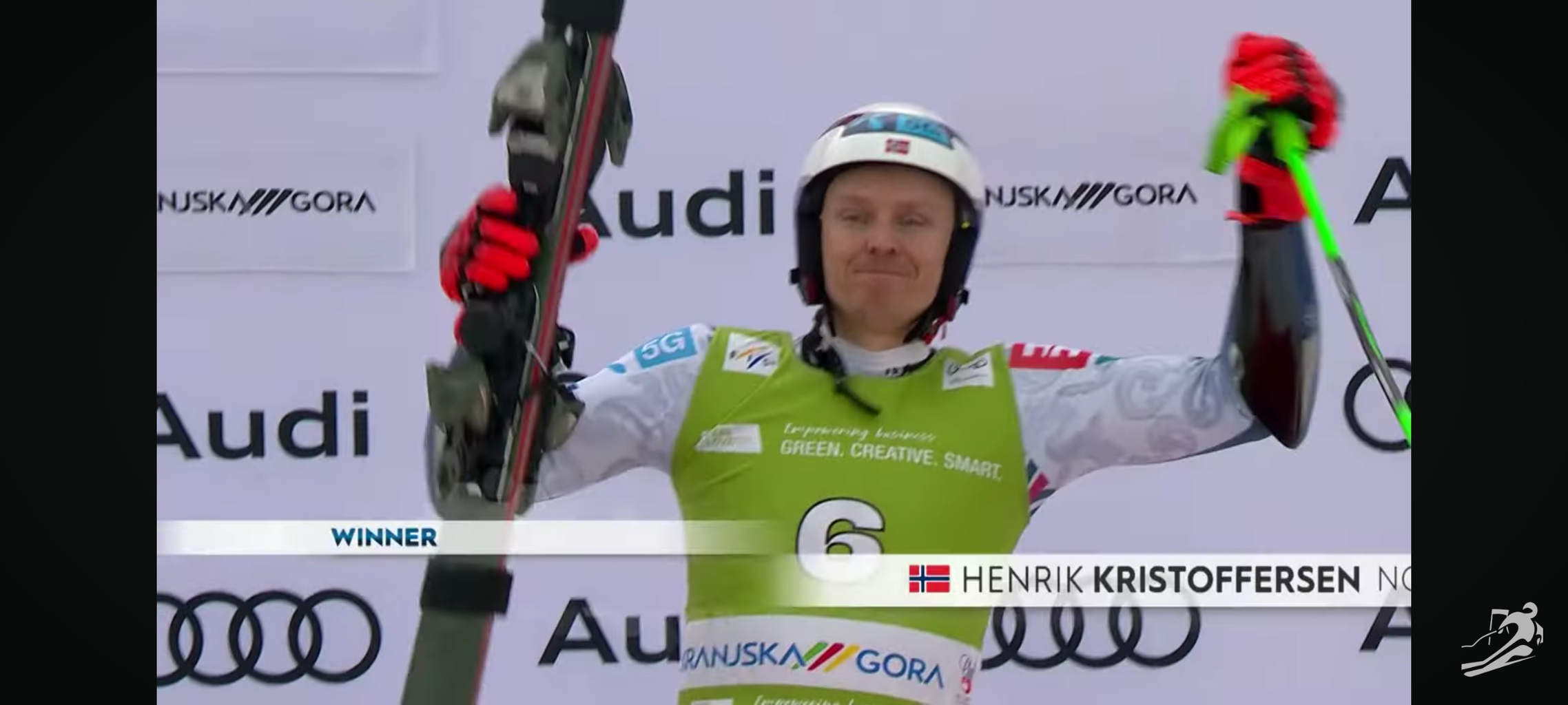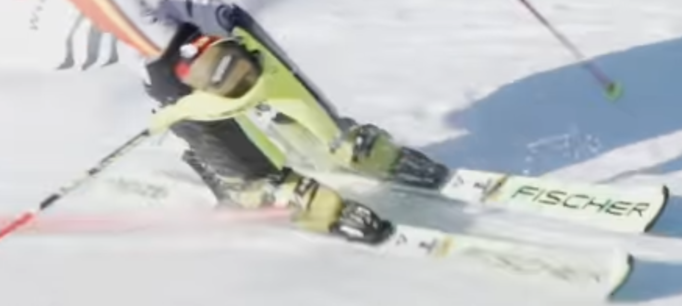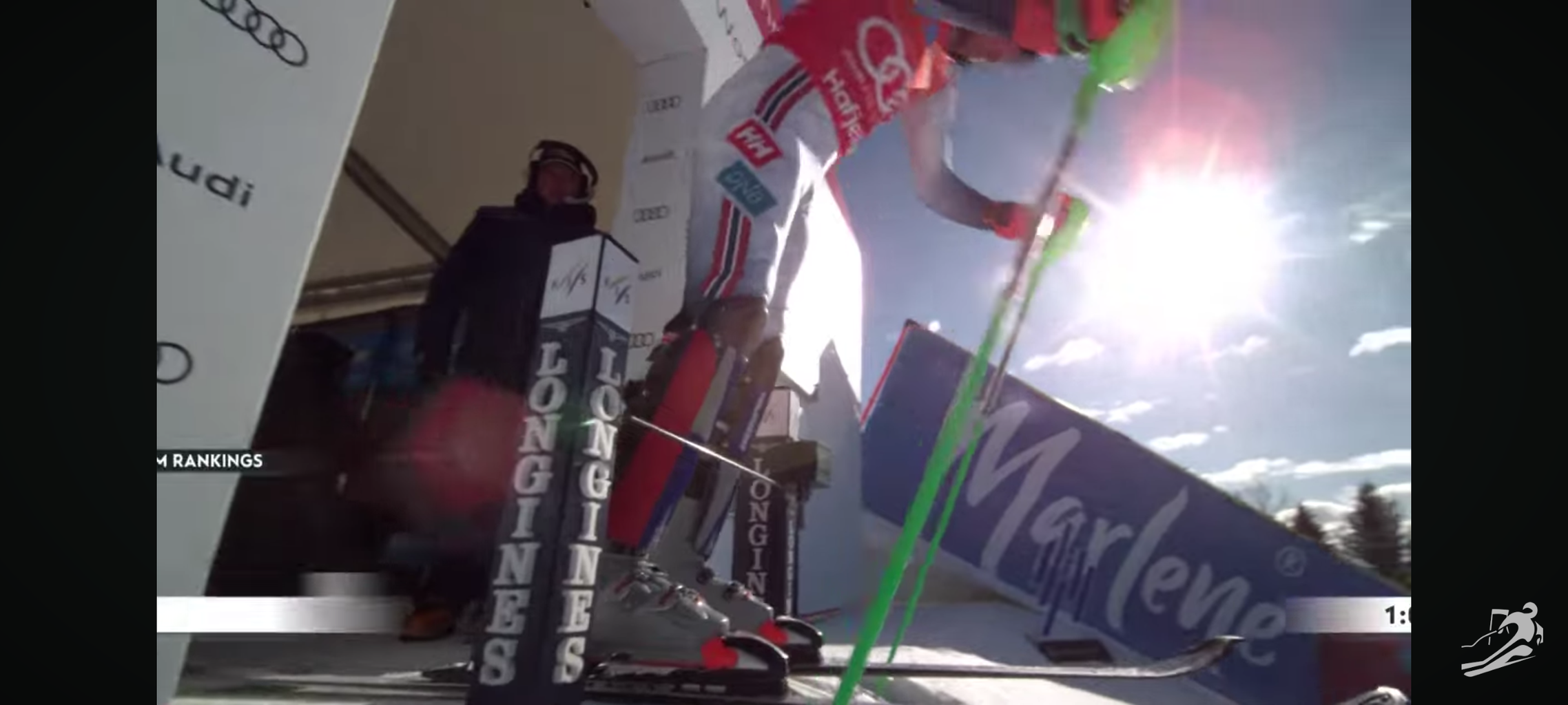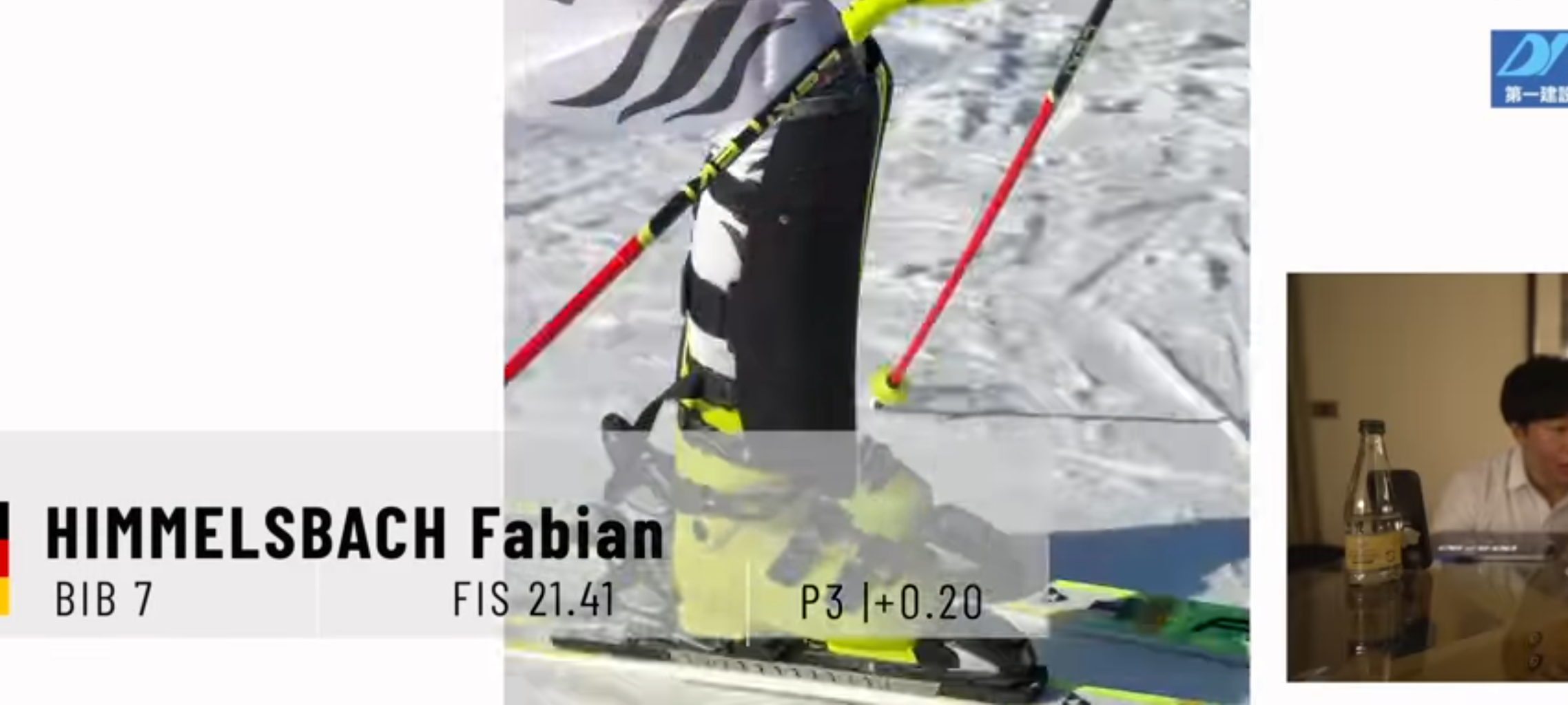 5:00辺りからで、この選手が板をノルディカからフィッシャーに変えたけどビンディングはマーカーのままなので違和感無く乗れている、と言う内容てす。(今フィッシャーはビンディングマーカーなので、と聞こえます)